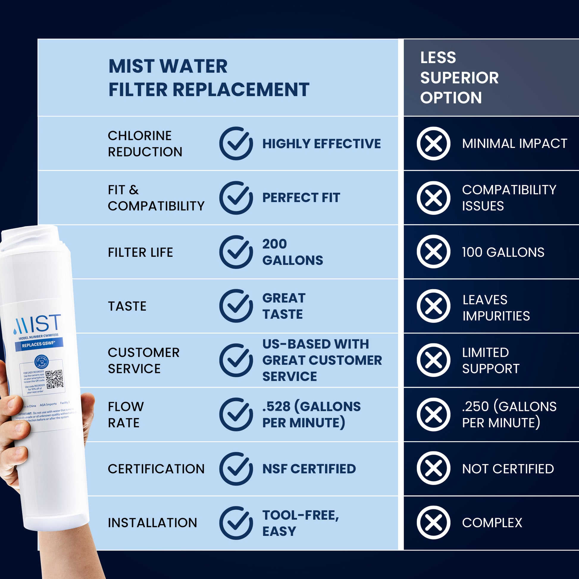 How does Mist CWMF035 compare to GE GSWFDS water filter?