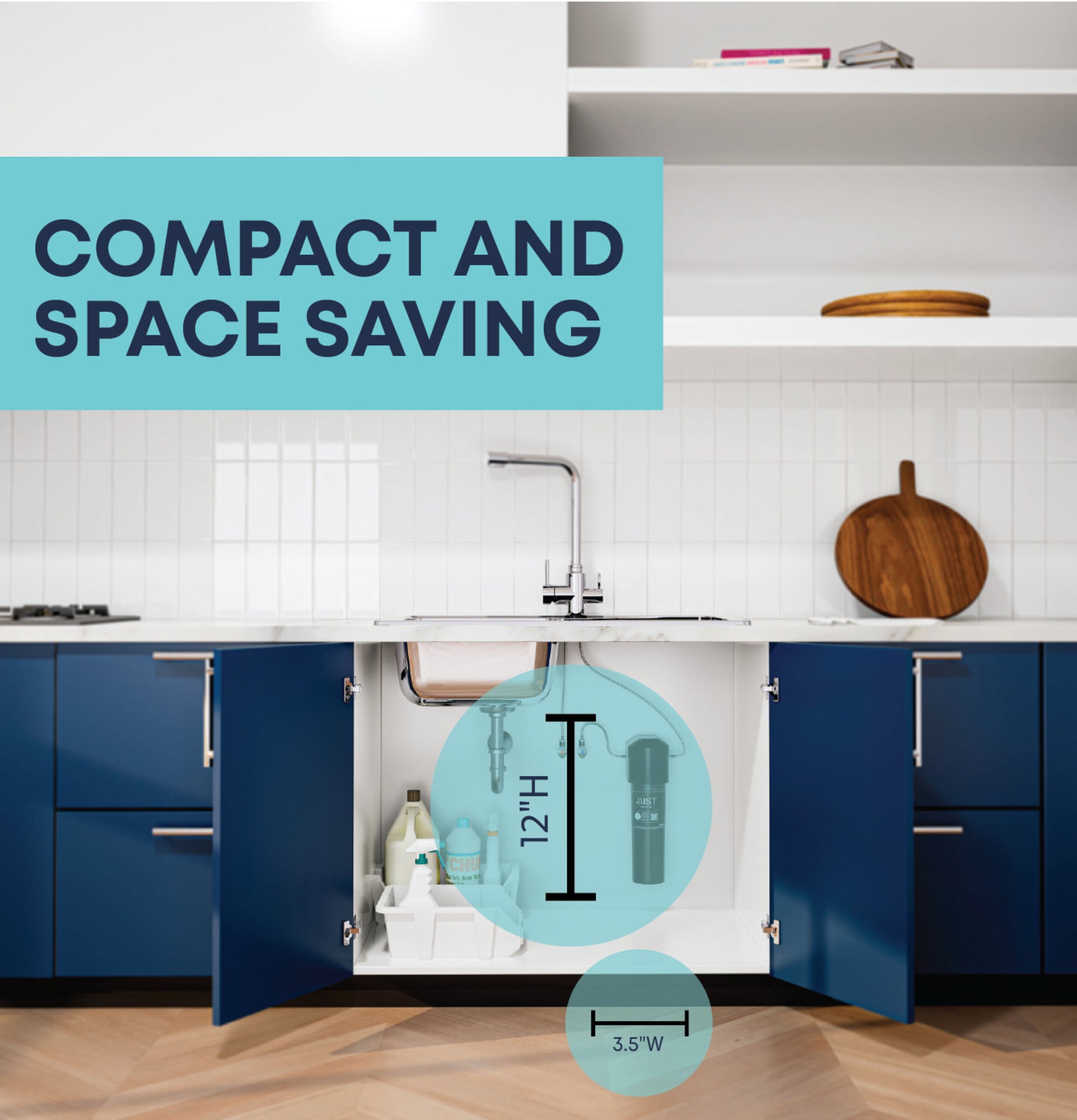 The Mist under-sink system is compact and takes up minimal under-sink space. Measuring at about 1 foot long and 3.5 inches deep, be assured that your under-sink space can still be utilized for other needs.