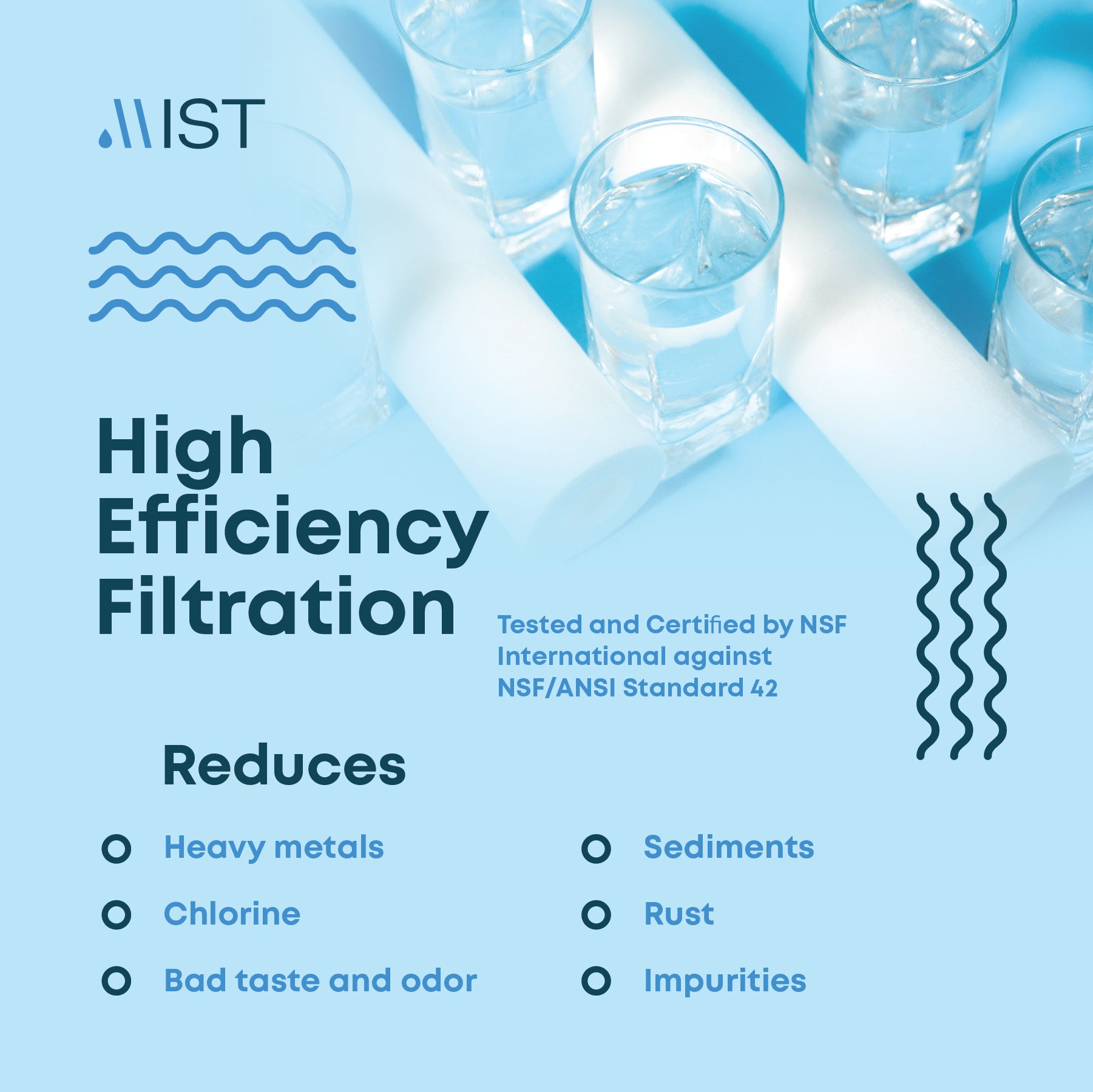 This system removes heavy metals, chlorine, fluoride, sediment, lead, cysts, rust, bad taste, and odors as well as other impurities from your tap water.